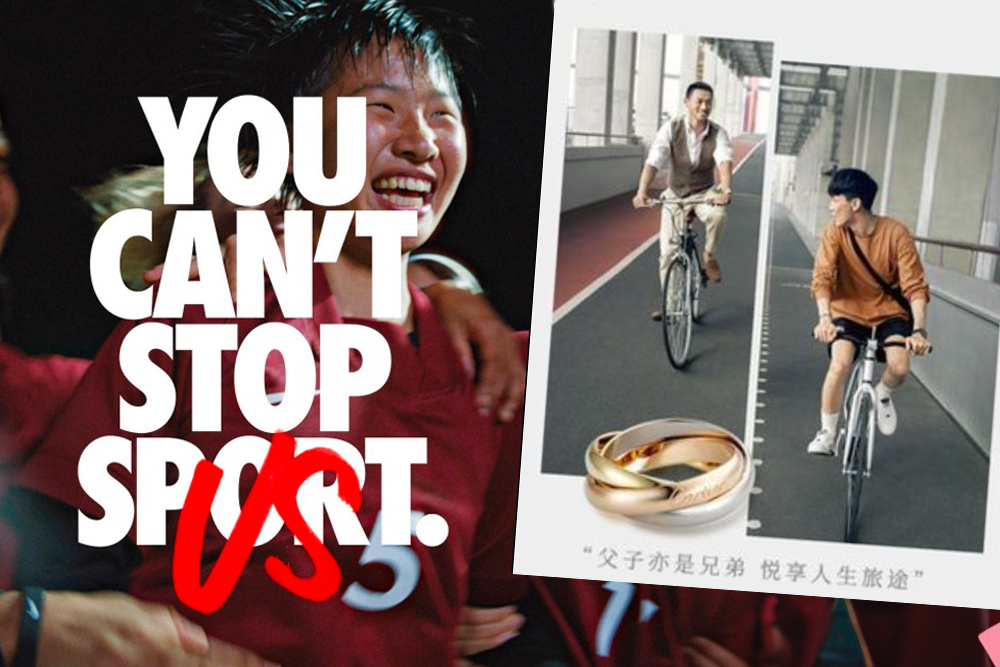 En Chine, c‘est la marque Cartier qui a suscité la polémique avec une vidéo publicitaire montrant deux hommes à vélo, portant la même bague, selon Cartier, un père et son fils, version qui ne fut pas crue.