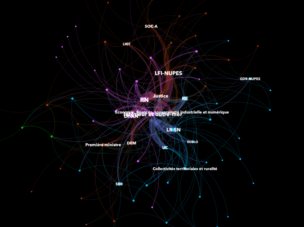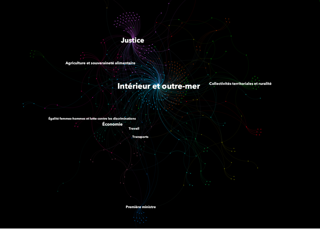- Les partis de droite interpellent davantage le ministère de l’Intérieur (répression) tandis que les partis de gauche interpellent plus les partis de gauche (justice), notamment sur les violences policières.