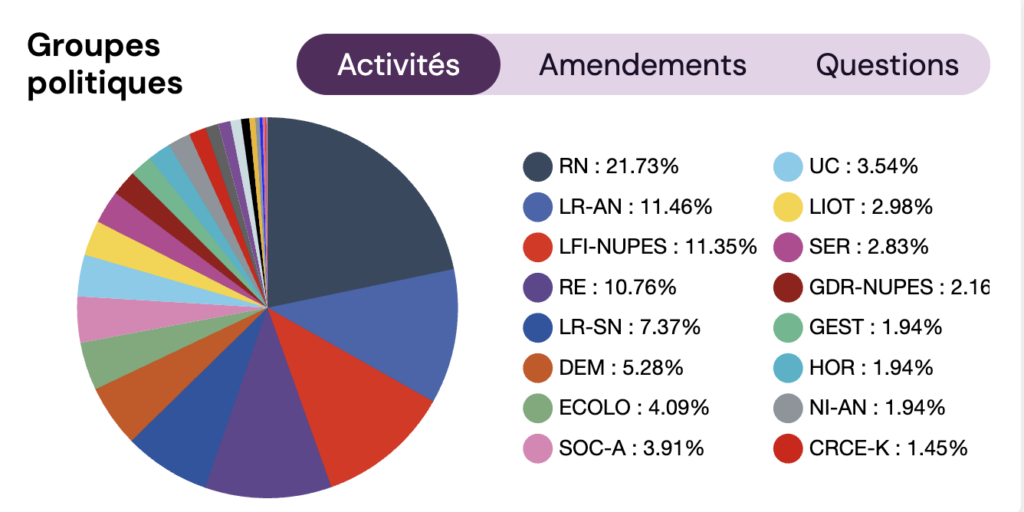 Renaissance est moins actif d’un point de vue législatif pour une simple raison : Gerald Darmanin surbooste Renaissance sur les réseaux sociaux, mais derrière lui, c’est faible en activité !