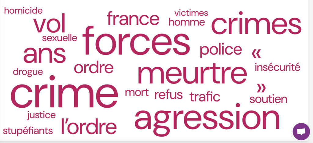 - Les médias sont les principales parties prenantes parlant de criminalité. Ils sont principalement de droite dans le traitement. On a également les médias d’actualités en continu (BFM / CNEWS)