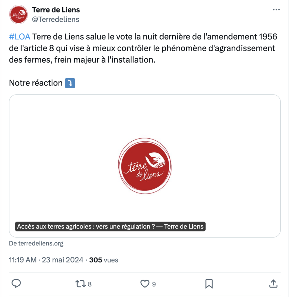 Mais cela reste faible. Exemple également sur Terre de Liens :