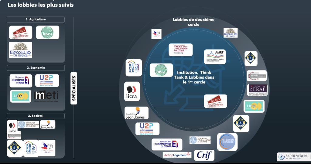 L’écosystème des lobbies suivis le plus par le gouvernement est le suivant :