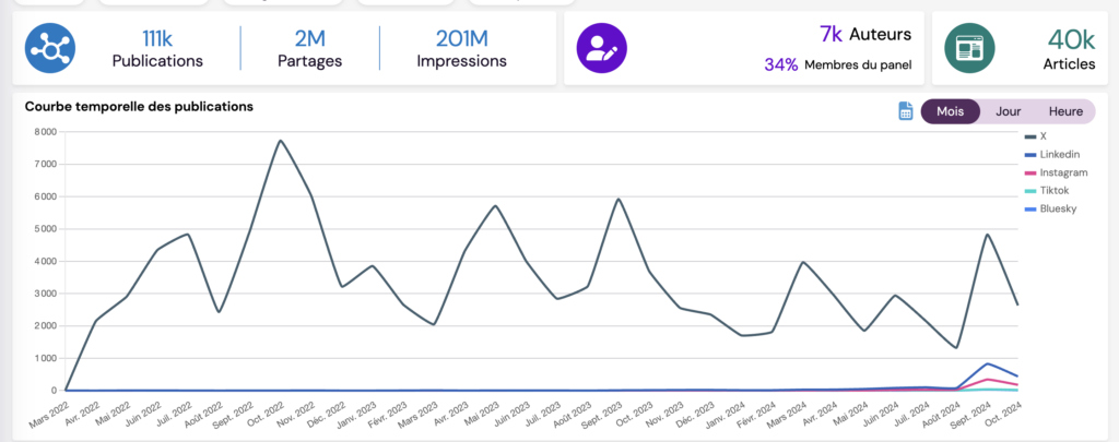 Notons qu’en dehors de cela, on retrouve un écosystème relativement très politique avec d’anciens politiciens qui ont une très belle audience sur le gouvernement actuel. Ainsi, Marlène Schiappa, désormais chez Tilder, profite de son précédent compte pour être très très bien positionnée sur ses prises de parole. Un coup d’oeil sur sa présence X montre qu’elle ne l’utilise cependant pas réellement.