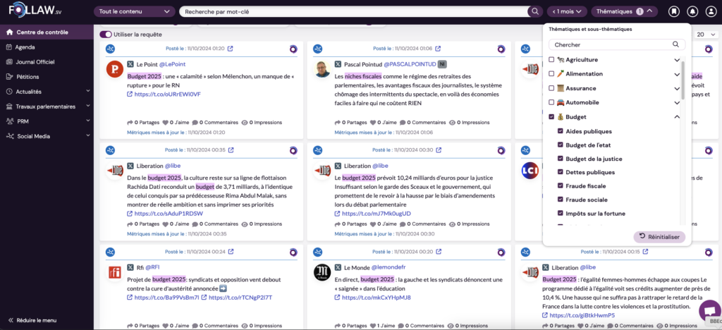 L’élaboration du Projet de loi de finances (PLF) pour 2025 suscite déjà une intense activité dans les médias. Et pour cause, de nombreux secteurs et entreprises risquent d’être impactés. Quels sont ceux qui ont une carte à jouer sur les réseaux sociaux ? Quels sont les meilleurs médias pour les toucher sur Instagram ou X ? Pour ce faire, nous avons reconstitué l’écosystème des followings des ministres sur les réseaux sociaux.