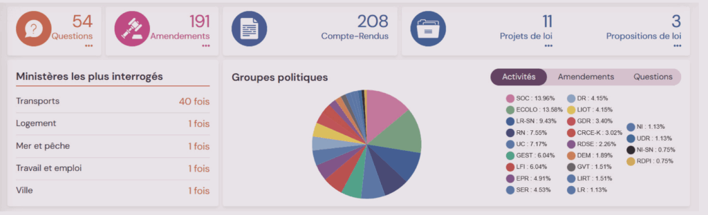 Enfin, au jeu des questions posées par les députés et les sénateurs, le ministère des Transports est particulièrement interpelé en ce qui concerne la dégradation des infrastructures (50 questions sur un total de 54 !). Des questions qui émanent avant tout de groupes situés aux extrêmes de l’échiquier politique. Par exemple, les députés RN, Julien Odoul et Julien Guibert ont respectivement dénoncé la fermeture de petites lignes SNCF dans l’Yonne et en Bourgogne-Franche-Comté et la dégradation continue des infrastructures ferroviaires de la Nièvre. De l’autre côté du spectre, c’est la sénatrice du groupe Communiste Républicain Citoyen et Ecologiste-Kanaky, Marianne Margaté qui s’indigne de la dégradation du service rendu aux usagers des lignes P et R du transilien et de l’insuffisance des moyens de réparation et de remplacement des lignes SNCF.