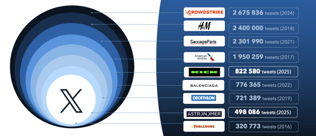 Reste que quand ça explose, ça explose fort. Deux nouvelles crises intègrent le Top historique des volumétries sur X :