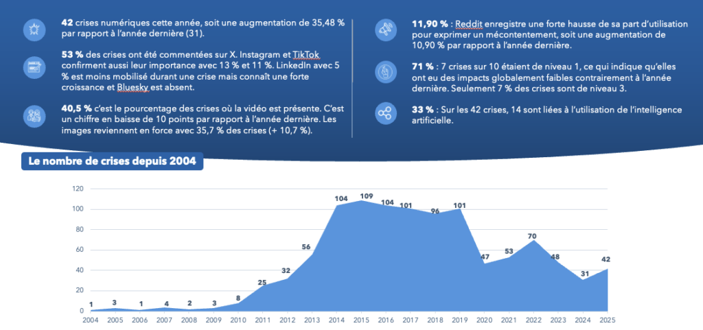 Le paradoxe est là : moins de crises, mais celles qui percent génèrent des volumes de conversation massifs. La concentration de l’attention est le phénomène clé.