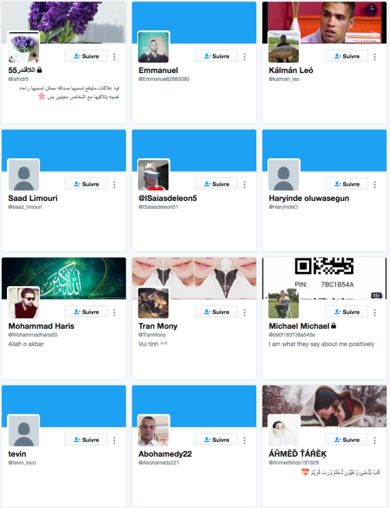 Oh le même résultat qu’ici. En réalité, ils achètent leurs followers via une plateforme dédiée. Ce ne sont pas des bots ou autres. En effet, il est devenu difficile d’avoir une armée de bots sur Twitter. Ce sont juste des humains comme vous et moi. Ils reçoivent une commission sous forme d’argent à chaque follow qu’ils font. Dans ces pays-là, cette somme est tout à fait substantielle. Cela permet aux fournisseurs de pratiquer des tarifs adaptés qui sont de cet ordre :