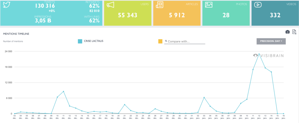 Voici maintenant 1 mois entier que Lactalis est dans la tourmente. La crise est désormais globale et systémique tant elle touche l’ensemble des parties prenantes du secteur. Il était donc temps de revenir sur le cas pour en analyser les différentes parties. Analyse faite avec Visibrain.