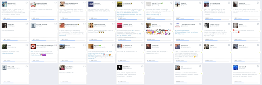 Derrière, on retrouve toute une série de profils soit faisant partie du cercle d’influence LREM, soit avec beaucoup de comptes génériques, ayant des pseudo et images quelconques.