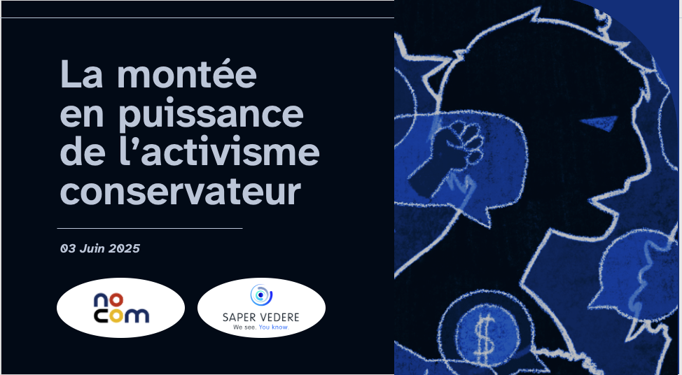 Mais une absence étonne car nous avions mis des acteurs proches de ces sphères : aucune communauté d’extrême droite ou même de droite. Or, nous avons eu un mouvement décrypté par No Com se passer aux USA tandis qu’en France, on observe la montée de Think Tank, de médias, de financements et autres autour des axes conservateurs. Nous nous sommes alors posés la question : quid d’un mouvement activiste conservateurs qui serait une menace pour le flanc droit des organisations ?