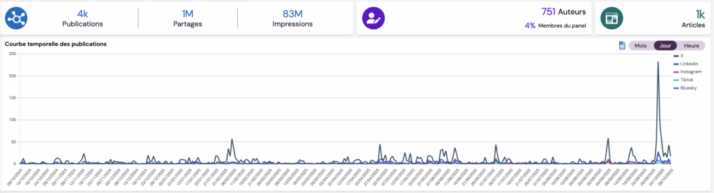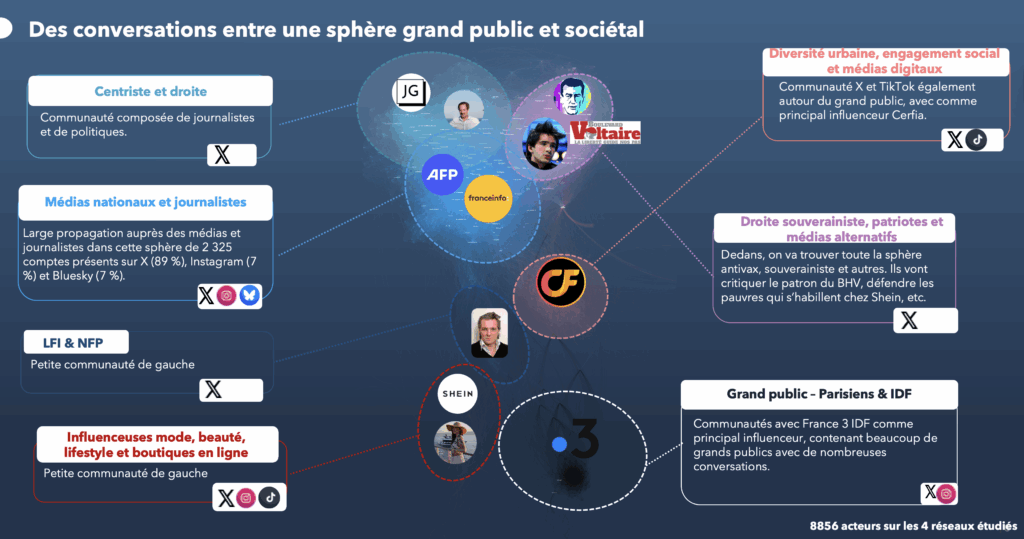 Cela dit, ces communautés sont sociétales et connectées politiquement. Dans les communautés grand public, beaucoup moins interconnectées, on observe que cela soit sur X des conversations tout autre pendant la période.