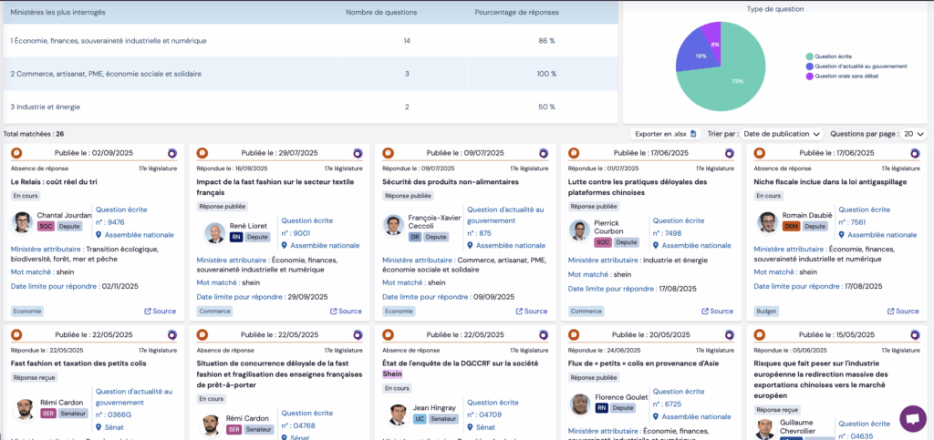 - À LFI & NFP : on retrouve une condamnation plus frontale, sur des thèmes de justice sociale, de souveraineté industrielle et de dumping. Shein est vu comme un acteur de la mondialisation extractrice qui affaiblit les acteurs locaux.