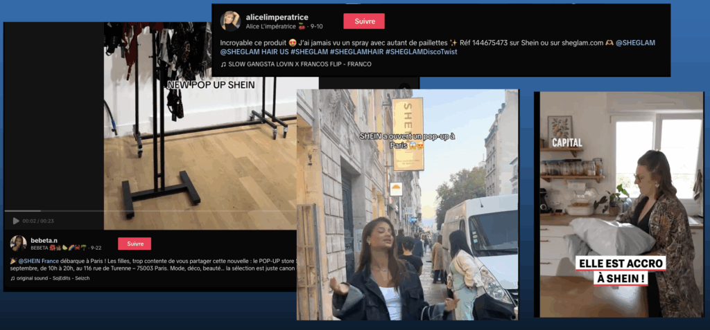 Tandis que Shein partage des vidéos extrêmement vues dans ses propres espaces loin des espaces sociétaux :