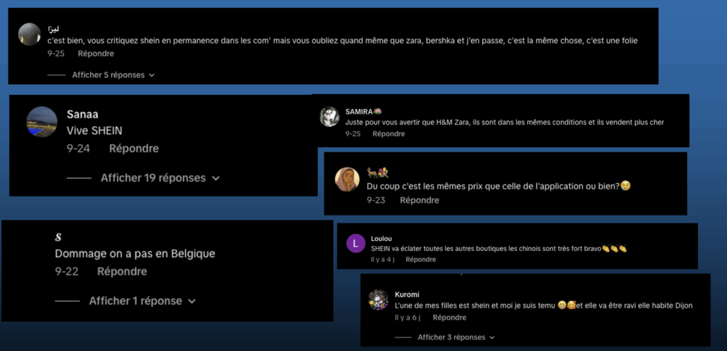 La veille traditionnelle sur ce cas ferait ressortir le fait que la polémique est énorme et le soutien de Shein se trouve dans des endroits moins visibles, comme les commentaires sur TikTok et Instagram et dans des communautés grand public sans interconnexion.